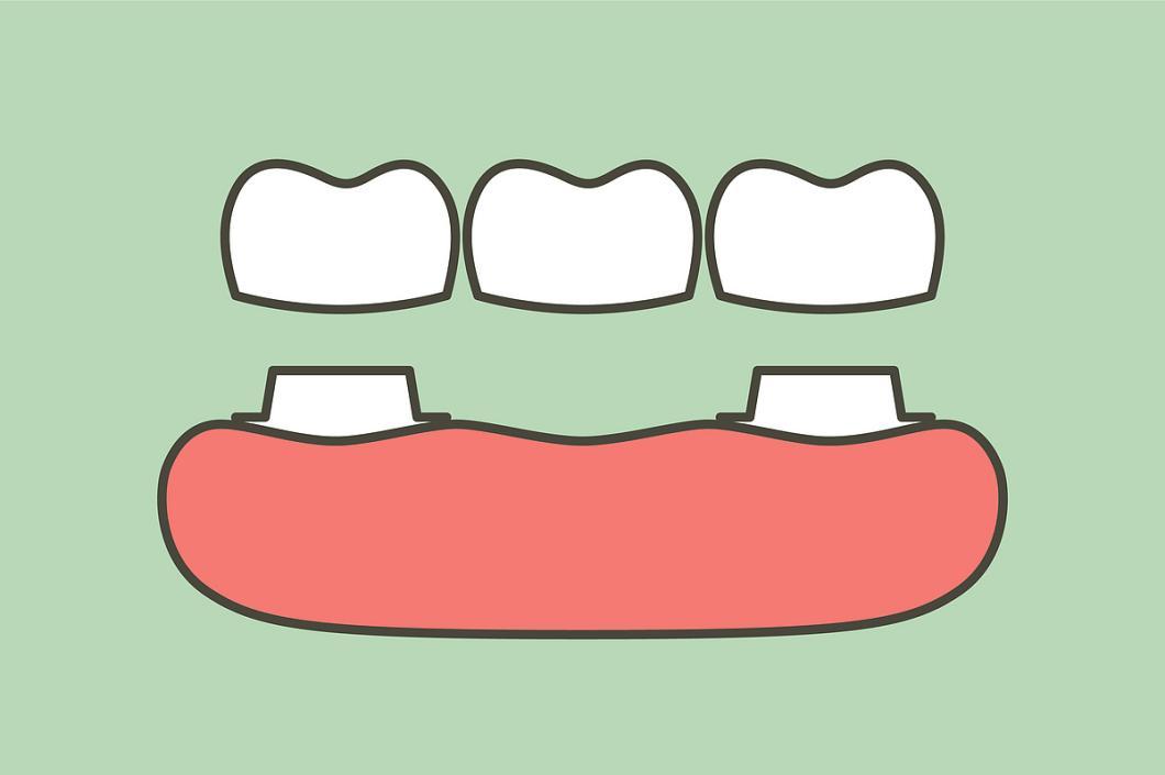 固定桥,俗称“烤瓷牙”,是将缺牙两侧的邻牙磨小作为“桥墩”,然后制作一个连在一起的牙冠套上去。