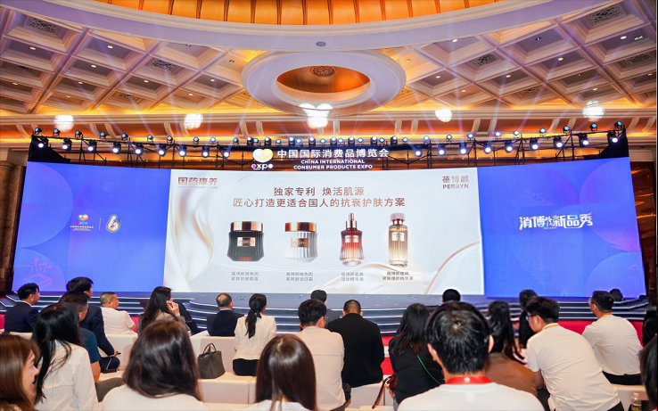本届消博会期间,国药康养旗下高端抗衰品牌蓓博颜举办专场新品发布会,重磅推出四大核心新品:玻色因紧致抗皱面霜、玻色因紧颜舒润日霜、紧致淡纹精华液、夜间紧肤焕颜精华液。